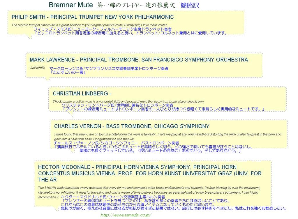 *ニューヨーク・フィルハーモニック主席トランペット奏者フィリップ・スミス氏の推薦文/ 簡訳 : ピッコロトランペット用を定番の練習用に加えると良い。トランペット/コルネット兼用と共に愛用しています。
