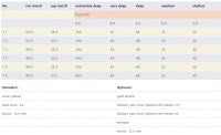 内径1〜6(1は2よりも大きい) 。カップAA〜D(Cカップが標準、Bカップが深め、Dカップが浅め)銀メッキ仕上げ。